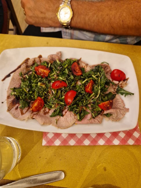 10/10This was by far the best restaurant of our vacation! The owner was funny and friendly and able to explain the menu in both English and Italian. The food was out of this world. For reference, we enjoyed the cheese plate with honey and jams, 2 pasta dishes- the ravioli in balsamic glaze is what dreams are made of. The pork shank, artichokes and potatoes- delicious. And homemade cherry panacotta and coffee for dessert. The meal was incredible! We had a delicious and reasonably priced bottle of wine and thoroughly enjoyed our last night in Rome at Osti Matti. Not to be missed this is a hidden gem.