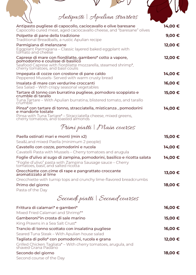 10/10Perfect experience at Ostinati! Service was very polite and attentive, food was great (Parmigiana and grilled calamari as well as tuna steak in particular). Location ist really nice in a more quiet street but just some steps from via garibaldi. Definitely a place to recommend!