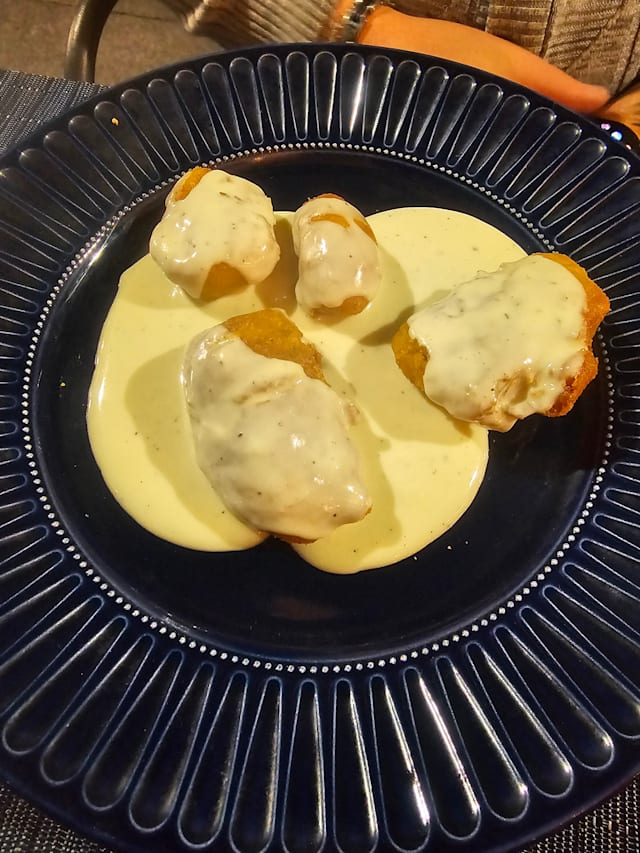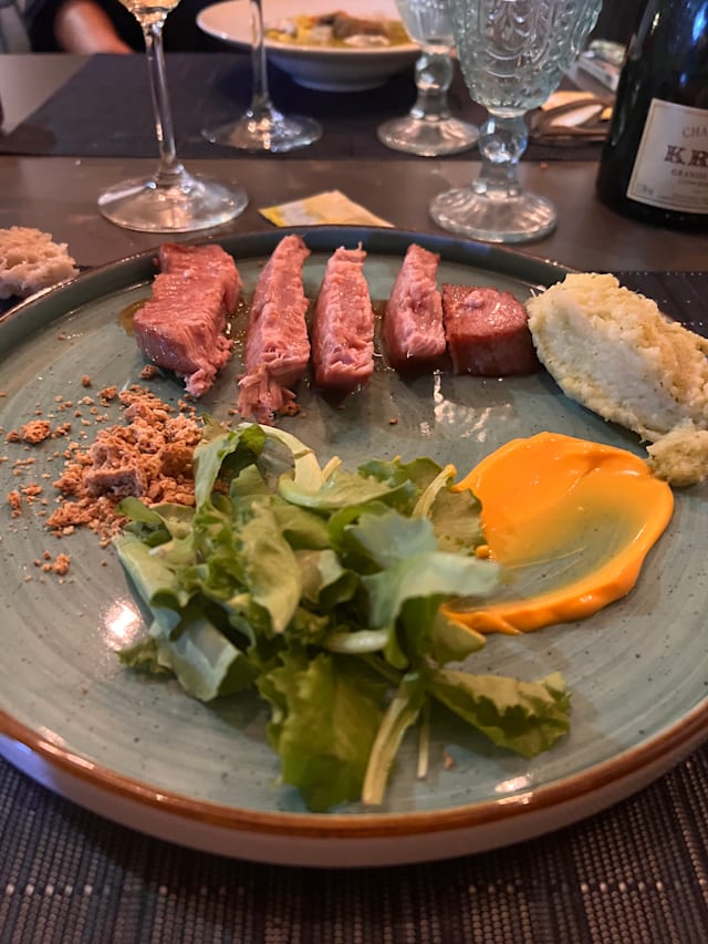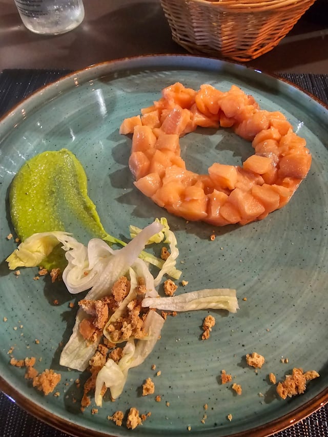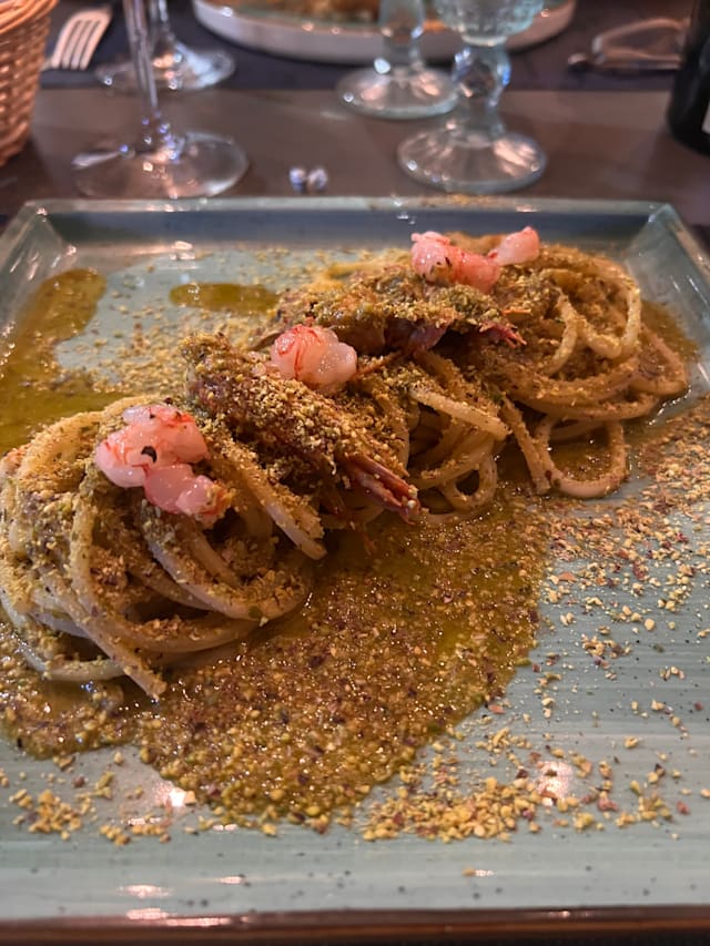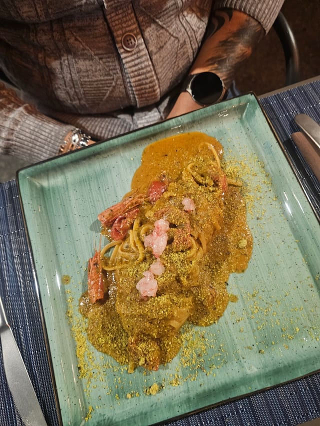 4.5/10Raw tuna was masked in peanut butter sauce and lots of peanuts, overwhelming the tuna. For the calamari and fish plate dish, octopus was tough didn’t taste fresh. The 2 seafood pastas we both ordered were too salty and seafood not fresh. Lobster was shrunken. It was not value for money and most expensive meal of our 4 nights in Alba.