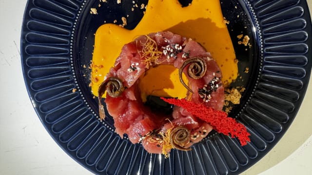Siamo spiacenti di apprendere che la sua esperienza non è stata all'altezza delle aspettative. Tuttavia, vorremmo sottolineare che nel nostro menu è chiaramente indicato che il tonno è servito con salsa di burro di arachidi. Se non gradiva la salsa, sarebbe bastato chiedere di ometterla. Inoltre, il fritto di pesce e calamari non include polpo, quindi se non è riuscito a riconoscerlo, è un problema che non possiamo risolvere. È importante anche ribadire che nel nostro ristorante non può trovare pesce non fresco, poiché selezioniamo solo ingredienti di alta qualità. Riguardo alla freschezza del pesce e al costo del conto, riteniamo che sia un'opinione soggettiva, considerando che ha ordinato una bottiglia di vino da 100€, il che ha sicuramente influito sul totale. Ci auguriamo che abbia trovato un ristorante più adatto alle sue preferenze in futuro.