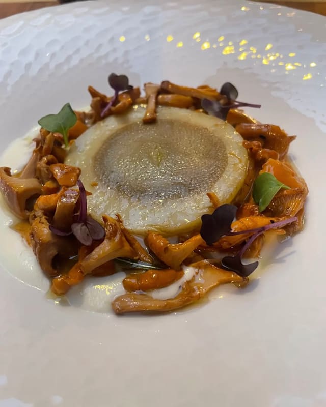 Fondo di carciofo, finferli trifolati e zucca sucrema di Morlacco