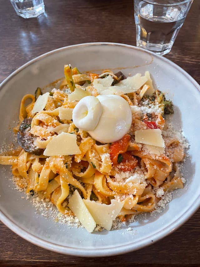 10/10Fun Italian meal on a rainy evening. Restaurant was busy yet filled with very happy customers and servers. We had a vegetable sales, pizza Burrata and a pasta plus the cocktails of the day. Delicious!