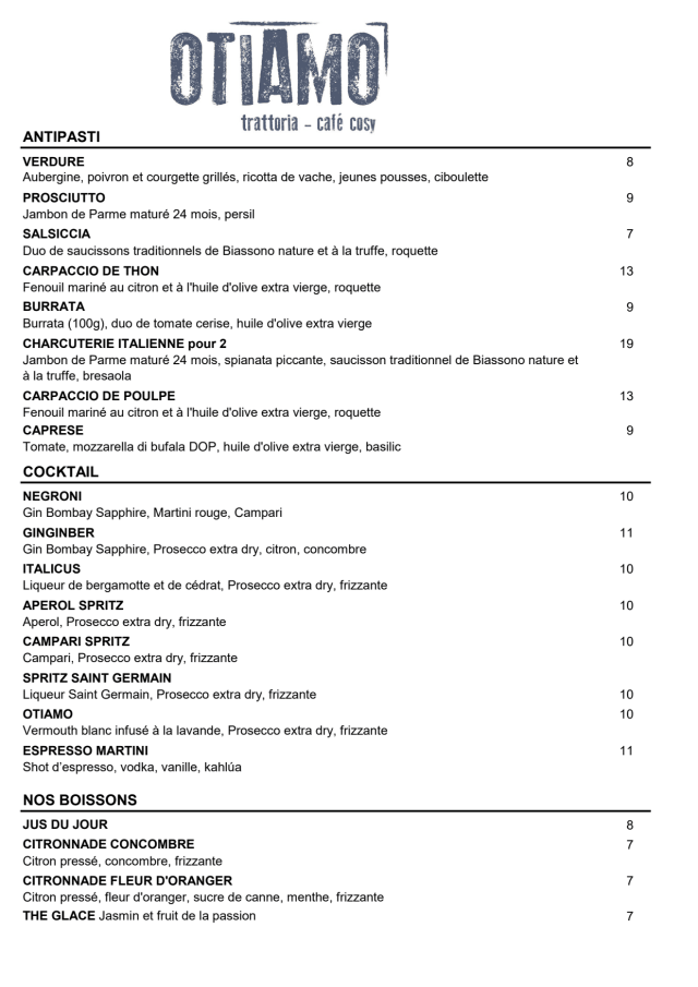 10/10During our recent family trip to Paris, we had the pleasure of dining at Otiamo, an Italian restaurant nestled on Rue de Bièvre in the heart of the city. From the moment we stepped in, the warm and inviting atmosphere made us feel right at home.  The menu offered a diverse selection of authentic Italian dishes, catering to all our tastes. We started with the burrata, which was exceptionally creamy and flavorful. For our main courses, we chose the rigatoni amatriciana and the lasagna; both were prepared with fresh, high-quality ingredients and were absolutely delicious. The pistachio tiramisu we had for dessert was a delightful end to our meal.  The service was impeccable, with attentive and friendly staff ensuring we had everything we needed throughout our dining experience. The restaurant’s location near popular tourist spots made it a convenient choice after a day of sightseeing.  Overall, Otiamo provided us with a memorable dining experience that we would highly recommend to all