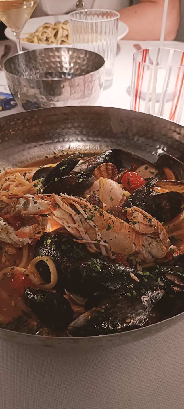Paccheri di gragnano con bisque di crostacei, pistilli di zafferano e gambero rosso