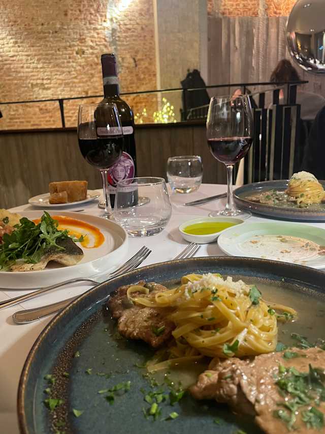 - Tagliatelles aux gambas, sauce tomates fraîches, basilic et vin blanc (1pc)