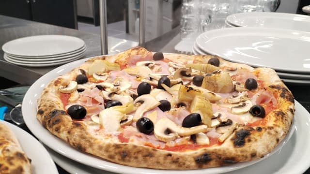Pomodoro, cotto, funghi, carciofi, olive e mozzarella