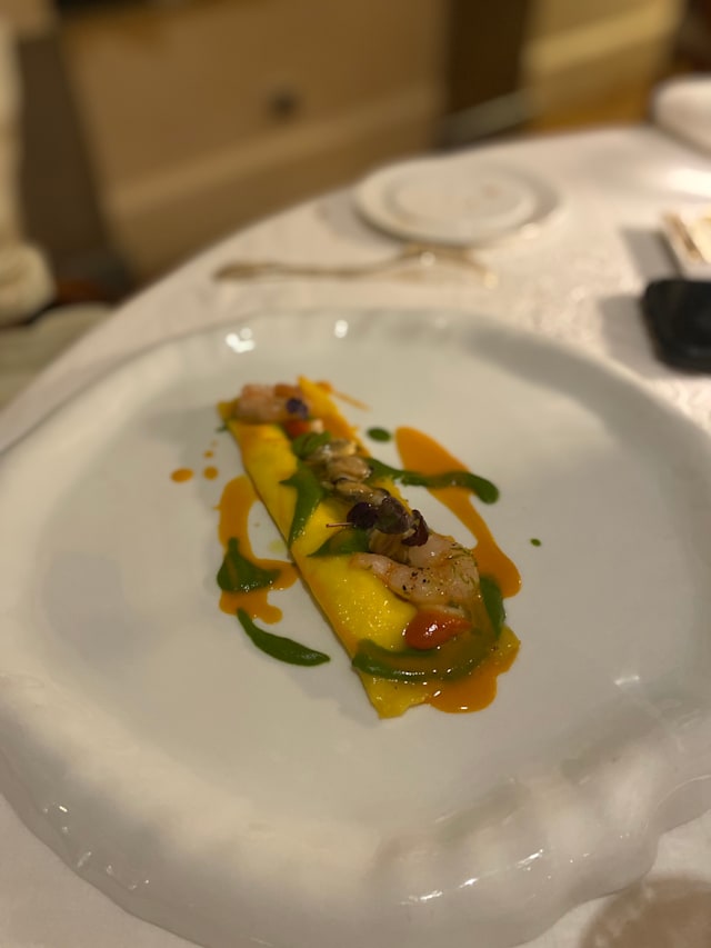 8/10Food and staff was amazing. However I felt we were rushed to finish courses early so they could fit all dishes within expected time frame. I find it to be a big downside in a restaurant like that. We wanted to enjoy courses and wine, have a nice experience out of it, but we were served 8 dishes in less then 2 hours. I ended up not enjoying last dishes because I was so full. It wasn't our first experience in a restaurant like that, and in other restaurants dinner lasted a lot longer. Shame we couldnt book table for earlier for example 19pm (restaurant is open from 20, and we were able to get a table at 21), since we do not only expect food to be outstanding, but whole experience to be enjoyable.