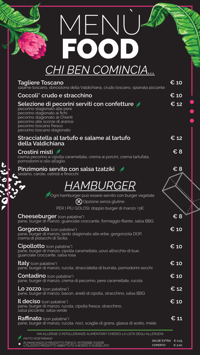Per un’esperienza gustosa e divertente, sempre accompagnata dall’atmosfera vivace del nostro locale...