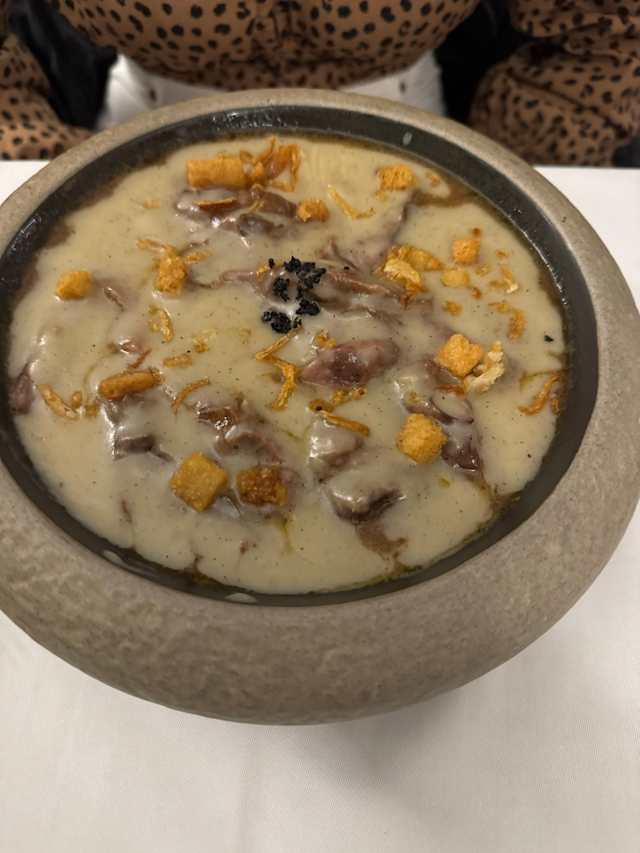- Desmigado de rabo de toro con crema de patata trufada