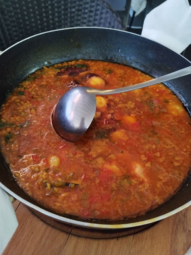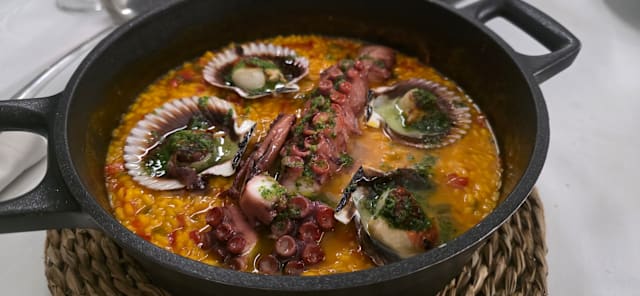 Arroz semi-caldoso de pulpo, gambas y zamburiñas/persona