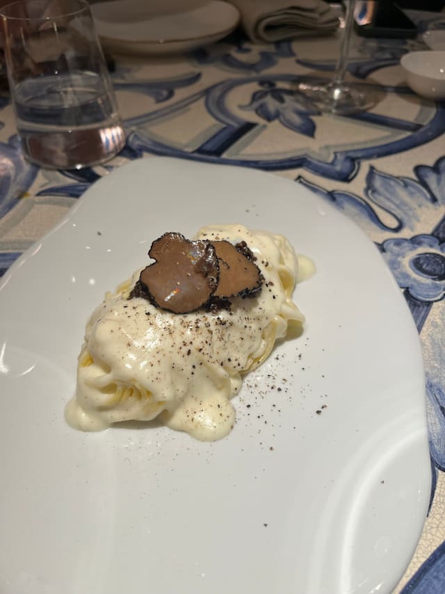 Spaghetto quadrato mantecado con parmigiano reggiano 24 meses y trufa negra
