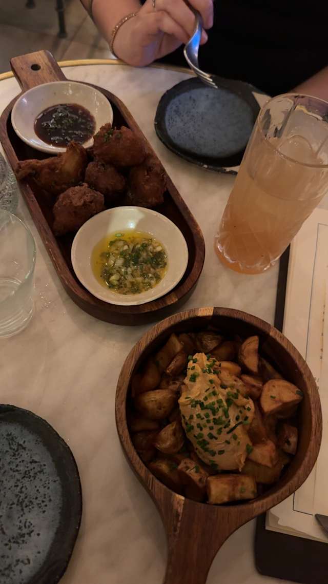 5.5/10The starters (soup) arrived lukewarm (despite us being among the first guests) which was a real shame as the flavour got lost under all the cream. One of the main courses arrived when we were still half way through the soups . We then waited for my friend’s main to arrive which it never did since the waiter was apparently not aware of the order. The chocolate so-called mousse desert looked more like a dog’s dinner and very watery. Decor: There are only a handful of chairs in the place otherwise one is perched on hard stools - people did not look comfortable on them as we left. The blue neon lighting looks like a hospital setting; fried food smells with no visible ventilation from the kitchen (which is in the second eating room) got overwhelming . Bottom line, we were glad to leave. Only plus point was nice bottle of wine priced just under €40.