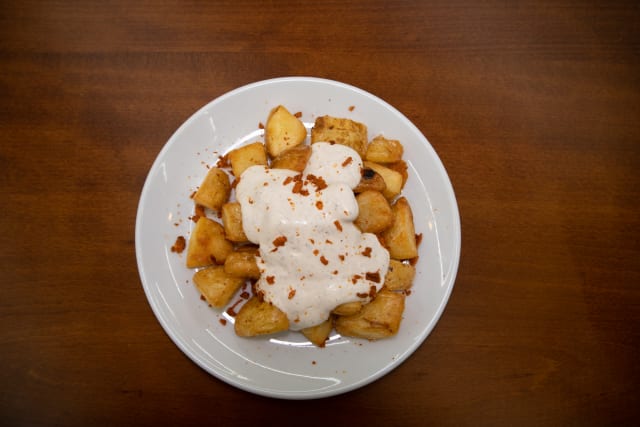 Nuestras bravas con alioli y salsa picante