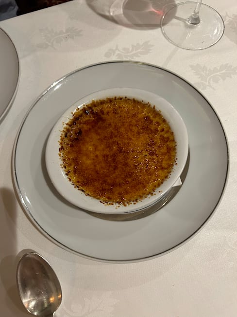 7.5/10I like the setting. It's quiet and comfortable inside. The service was not hyper-attentive but generally prompt. The food was good, although there was one surprise. I thought with all the tableside trolleys for pouring wine, serving bread, etc., that surely the fairly dear Caesar salad would be prepared tableside, but I was disappointed when it appeared out of the kitchen with the same lackluster heavy dressing and heavy parmesan sprinkles that I find in any American restaurant. Other than that, drinks were great and served in classic rocks glasses. A good meal all around, but I was expecting a little more on the Caesar salad.