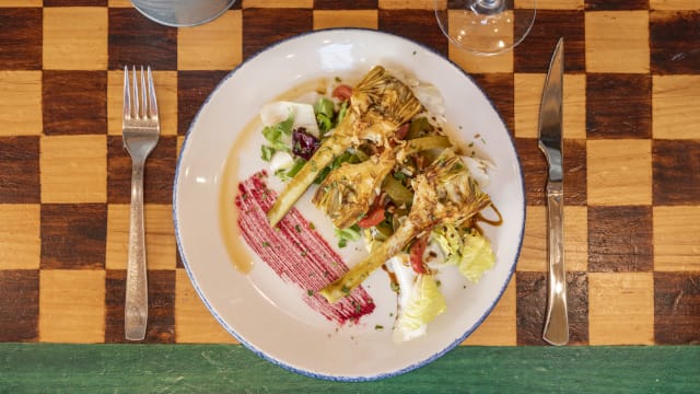 3.5/10We read the Tripadvisor reviews and were genuinely looking forward to eating at this restaurant. The food was painfully slow and not fresh. I had the garlic prawns and the oxtail stew. The prawns were not fresh and had a strange flavour. The oxtail stew was disappointing with barely any meat, it was all bone and very gelatinous. I was with my two sisters who are vegetarian. The food they had arrived after an hour and was not nice. The aubergine only tasted of oil and the artichokes were virtually raw with no sauce. The toilets were the worst. My sisters said that had they been before the meal they would have insisted on leaving the restaurant and said the ladies were the most disgusting they had ever had the misfortune of using. It’s a shame as the restaurant itself had a nice atmosphere and very nicely decorated. But a restaurant has one job - deliver nice food in an hygienic environment. They failed.