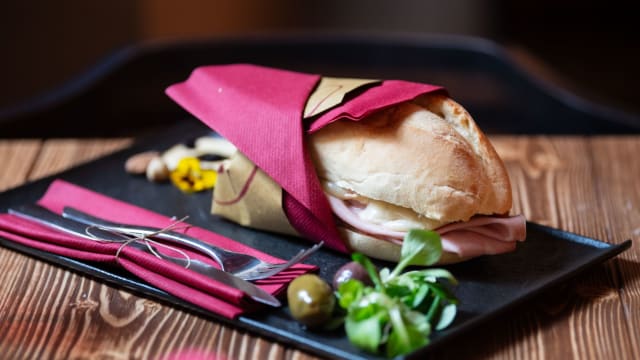 Prosciutto cotto nustran, crescenza e gelatina di fiori di sambuco.