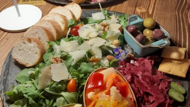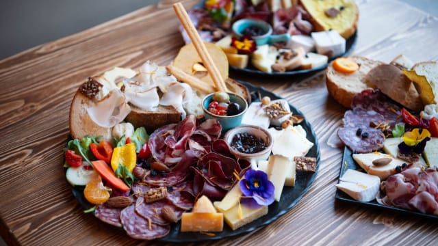 Tagliere composto da formaggi nostrani fatti con diversi tipi di latte e salumi nostrani. Troverai formaggi di intensità elevata, con almeno due erborinati.