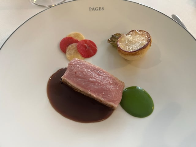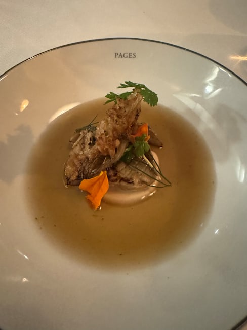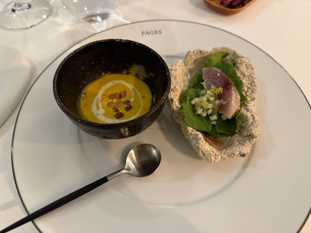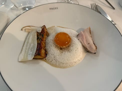 10/10I had never been to a Michelin star restaurant before, and honestly had no idea what to expect. I had made a reservation for two, but my friend was sick & unable to make it. The host was very understanding & adjusted to the situation. Inside, the ambience was incredible. It felt so welcoming & warm, with everyone being so inviting. I had wondered about dress code for a restaurant like this, but was welcomed in wearing nice pants & a designer t-shirt. It felt very comfortable. The service & food was astounding. It was easily the best meal of my life. It was about 2 1/2 to 3 hours total to get through all the courses. It was an incredible experience, and I can’t thank the amazing staff or the incredibly talented chefs enough. The love for food & the unmistakable care for guests oozes out of Pages