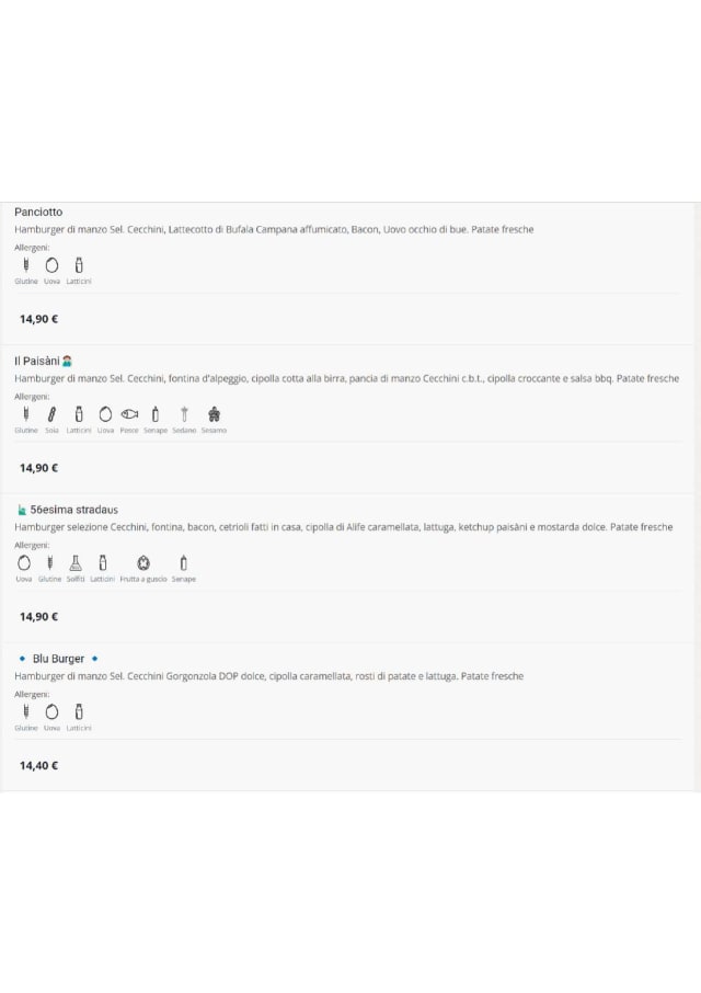 MENU HAMBURGER€15 per guest