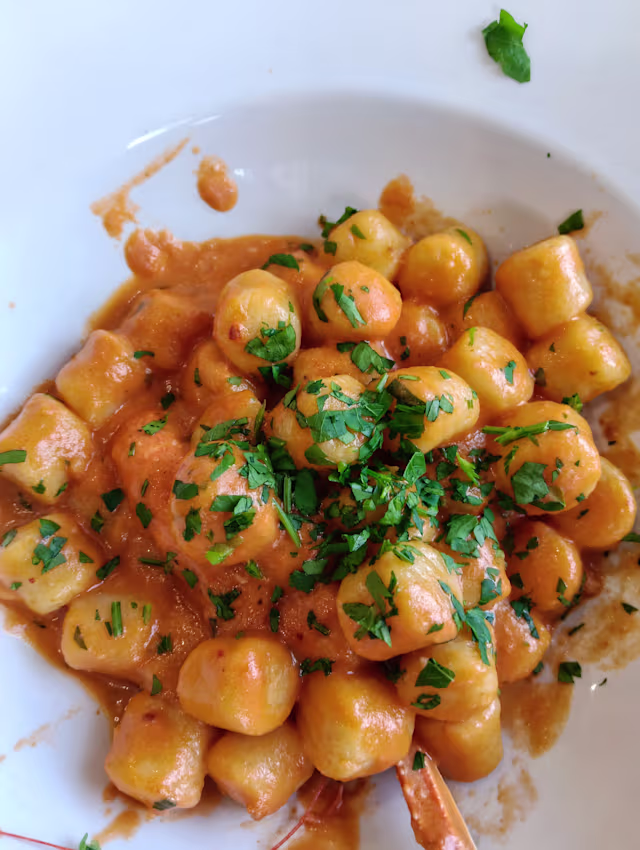 - Gnocchetti di patate, panna fresca, scampo, prezzemolo