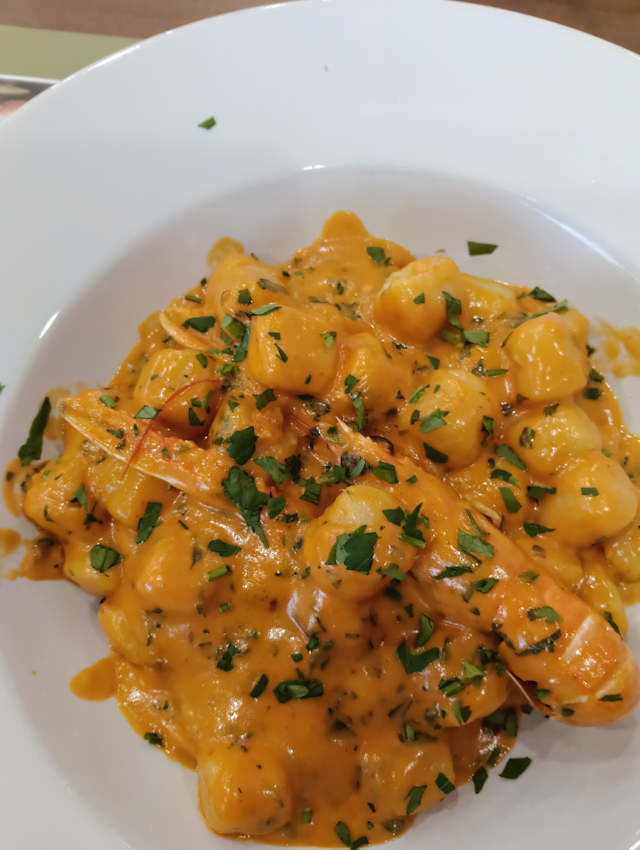 - (gnocchetti di patate*, panna fresca, scampo*, prezzemolo)