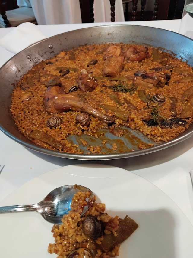 - Valencian paella (chicken, rabbit, snails and vegetables).