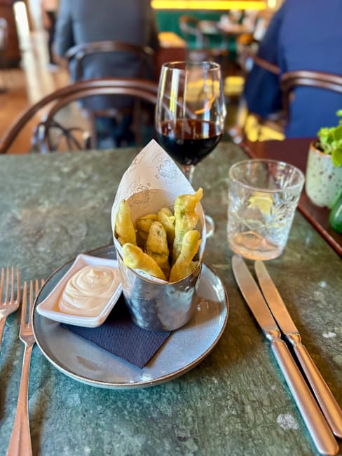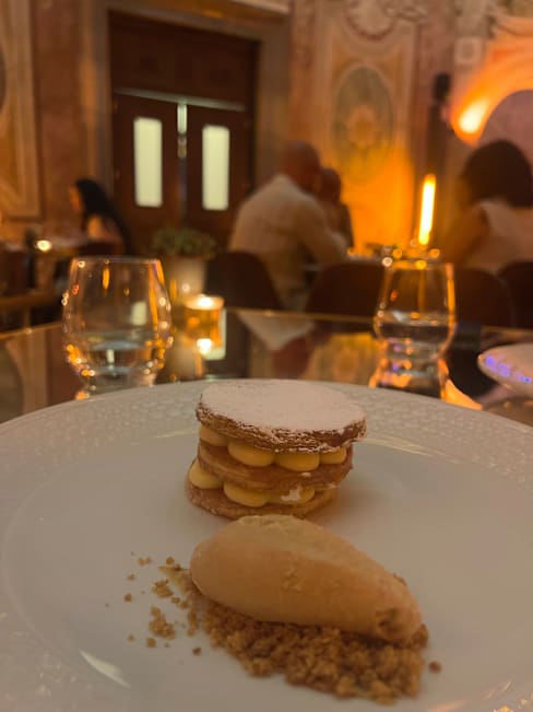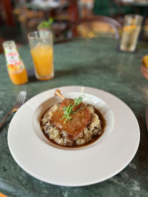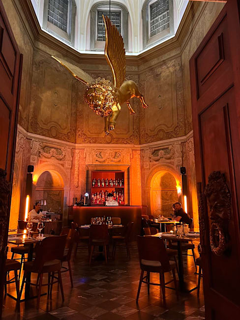 10/10+3It goes without saying that the ambiance is out of this world, they have done a modernized version of restoration, but it is tasteful and respectful (except maybe the big golden lion haha). But food wise, it was a huge surprise. I have tried the peixinhos da porta, which was lovely (but since it was my first time trying it cannot make a wise verdict), the duck leg confit however… out of this world, they have kept the flavor profile ‘simple’ and let the texture and quality of the ingredients do the talking. The meat was so tender, fell right off the bone, combined with the earthy mushrooms and perfectly cooked risotto. It’s a dish that will be hard to forget. The staff starting from the entrance up until the servers were so kind and attentive, very friendly. The whole lunch was a lovely experience, I am sad it is over.
