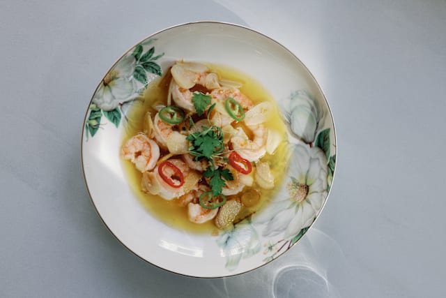 - Shimaji, shitaki and marron mushrooms with garlic, lemon and coriander