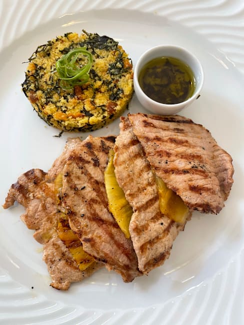 10/10Our dinner at Palácio do Visconde was an excellent experience. The dishes we ordered (Portuguese codfish with a crust of corn bread set on chickpea purée and sprouts; and grilled prawns, black risotto and coriander emulsion) were perfectly cooked and seasoned, and the dessert was delicious (Portuguese “Rocha” pear cooked in white wine). Both servers were attentive and knowledgeable, offering very good wine recommendations without being intrusive. In spite of some noisy guests, the atmosphere was elegant and cozy, with soft lighting and comfortable seating. We'll definitely be returning to try more of their menu.