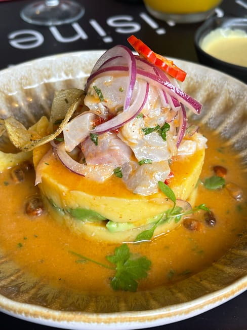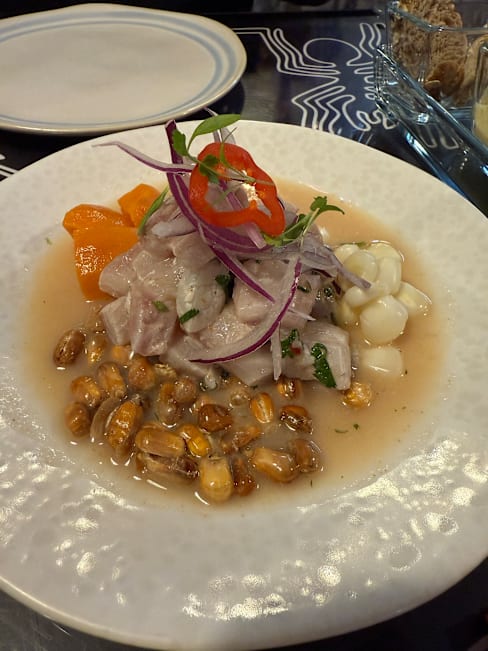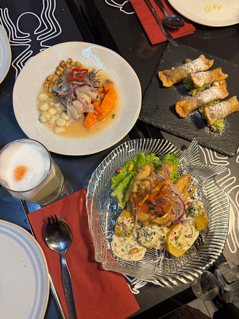 4.5/10I won't be coming back or recommend this restaurant. The food was not good, shrimp was not seasoned, Luke warm in a bed of overly sweet mashed sweet potatoes with a sweet dessert like passion fruit sauce. Both ceviches were bad,again no salt not seasoned, I had one in a cup with fried calamari which was was soggy because of the leche de tigre, lacked flavour and again with candy like sweet potatoes and no onions on mine. And the portions were small. I asked for some spicy sauce but got a ramekin of some chilli but mostly oil. couvert was a joke, no aipo or cheese but a sauce made from it, some old bread and the banana pao was just plantain chips you can get in the market. If you know Peruvian food this wasn't it. left hungry and disappointed. service was bad, rude waiter, no drinks offered, no ice offered in a 38c day, laughed when I asked if they had huancaina sauce, slammed the salt in the table when I asked for it 3 times and stormed off. ambiance pretty but tables too close
