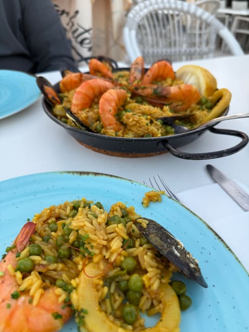 10/10The view is spectacular. The service was very friendly. The food was good and the servings were large. We had the seafood paella and the salmon. We started with the Cesar salad with chicken (huge portion) and cod croquettes. The deserts (lemon cheesecake, raspberry tiramisu, and chocolate cake were amazing.