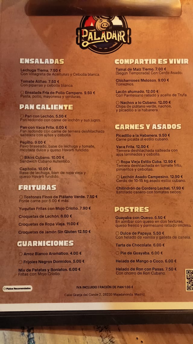 If you plan to eat at Paladar, the average price should be around €21. The average price is calculated based on appetizer/entrée or entrée/dessert, excluding drinks. Prices have been provided by the restaurant.