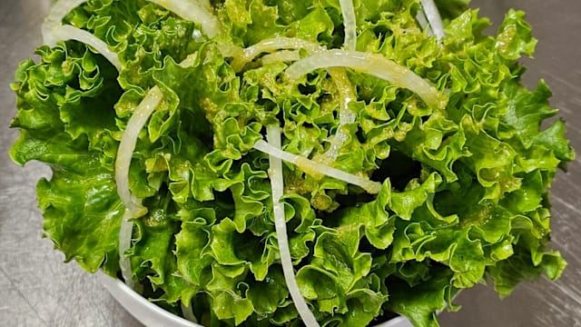 - Ternera deshilachada salteada con ajos laminados y cebolla