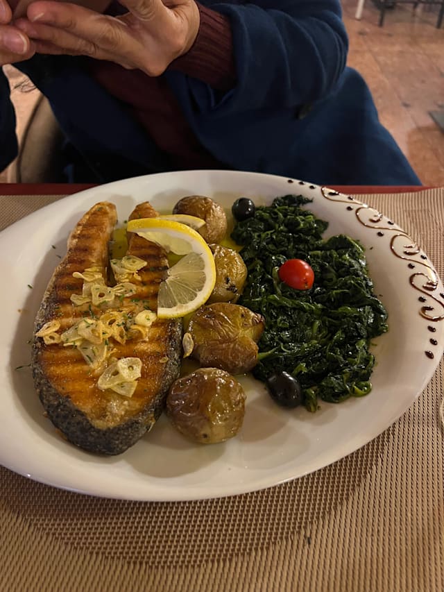 6.5/10First of all, our waitress was excellent; kind, pleasant, and helpful with a warm smile. The food was good except the salmon seemed a little dry. Free Jinja… hard to beat that. But when we got there it was rather cool inside. Both front doors were wide open and it was 50 F outside. My fiancée was cold and I asked if they could close the doors. As the waitress went to close one set, a manager or owner told her not so and suggested using a blanket for my fiancée. One one hand, kind, on the other, cheap. The place had a feel of recent ownership change with the owners not being born and bred Portuguese. Overall, a decent experience, but not at all what I’d hoped for.