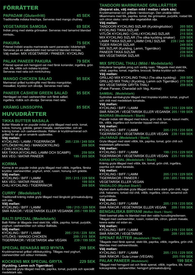 Butter masala är en populär indisk gryta tillagad med smör, tomat, kokos, honung, grädde, garam masala, cashewnötter, och en krämig tomat- och cashewnötssas. Rätten är kryddmarinerad och grillad för att ge en smakrik upplevelse.