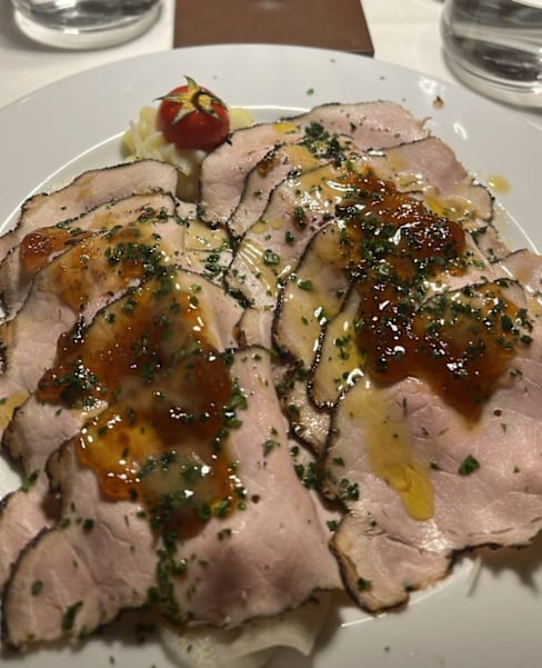 5.5/10The resturant was beautiful and upon entering, we were welcomed and greeted with a complementary glass of prosecco as they set the table up. Great start. However, the food we found to be mediocre at best. A main course of 'pork loin steak' turned out to be cold thin slices of sandwich meat, thrown across cold cabbage and a dollop of cold mashed potato. We found this to appalling for a main dish priced at €20. The only reason why we ate it was because we were very hungry and anticipated 4 star luxury food. We also didn't get any olive oil or condiments with our bread. Although friendly, the waiting staff were on a mission not to be seen #notimetodie. We were left alone the night and needed to get up to ask for service. I wouldn't recommend coming here expecting luxury. I would also ask if your food is going to served hot or cold.