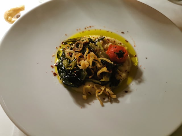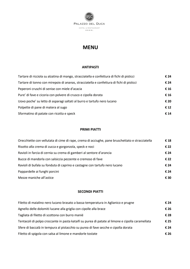 10/10Had a wonderful and memorable meal in the unique atmosphere of Palazzo del Duca. My companion and I are both vegetarian . She had the vegetabriab tasting menu while I ordered a la carte. All the dishes were excellent. It's a real treat to have such choice of vegetarian options.