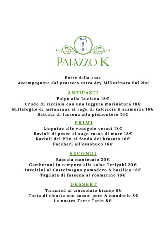 10/10A gorgeous setting in an impressive Palazzo. Elegant and luxurious without being pretentious. Instead it is warm, personal and welcoming thanks to the family who runs the hotel/restaurant and all the staff. I went for a degustation menu with a slight change to accommodate my personal preferences, and the food was copious and sublime at a very reasonable price for the experience that Palazzo K offers. Many thanks!