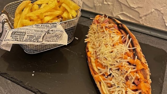 Paliburguer - la hamburguesa más sencilla, carne 100% de ternera o contramuslo de pollo rebozado, pan brioche, queso cheddar, lechuga y tomate. Acompañada de nuestras patatas fritas caseras€12El menú incluye 1 plato principal, 1 botella de agua y 1 postre