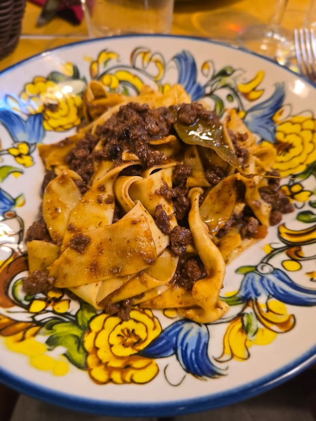 9.5/10Food was amazing. We came here after being underwhelmed by the food in Rome and were thrilled. I had the wild boar Bolognese, OMG!!!