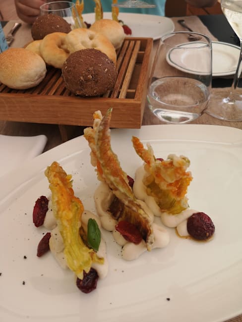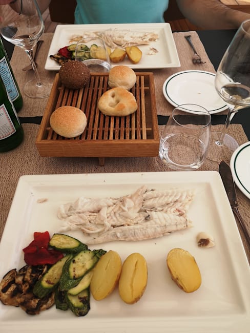 10/10Our lunch was lovely! We had an order of grilled vegetables as an appetizer and a nice pasta with pesto and an order of mussels. All were beautiful and delicious. Our server recommended a local white wine. A seagull attacked the food of a young couple who were sitting in the sun at the edge of the scenic terrace but they were quickly rescued and their table reset immediately by the efficient servers, And we had a twenty percent discount for booking through trip advisor.