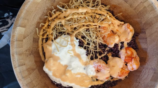 Gamberi in tempura con spicy mayo e verdure in tempura (5 pz)
