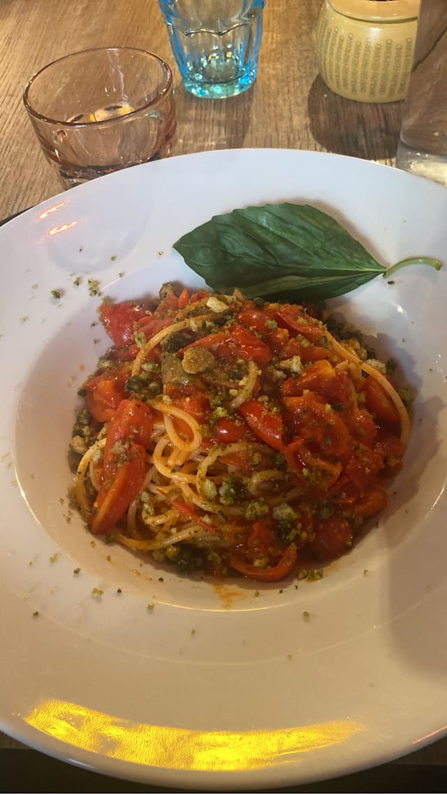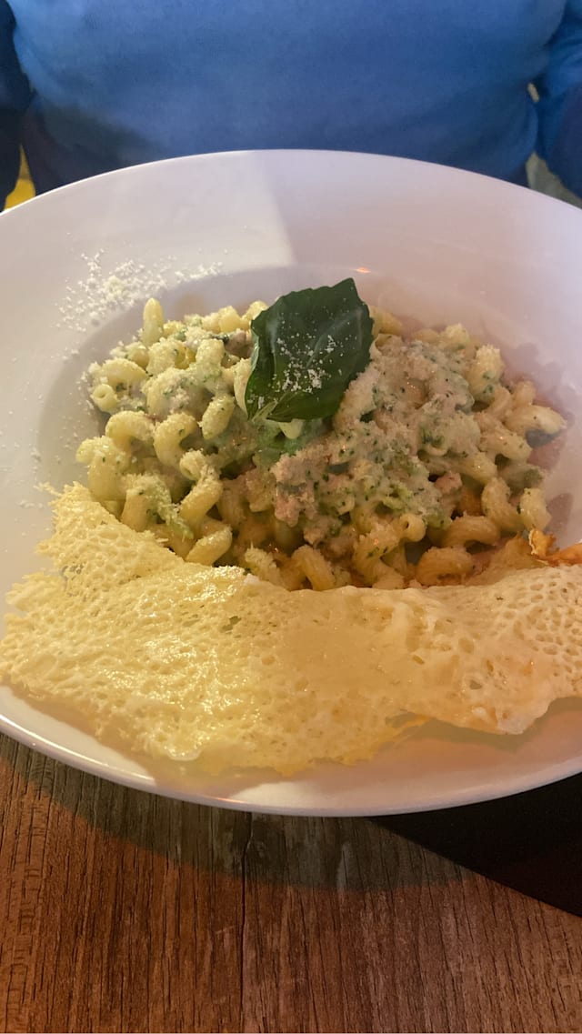 9.5/10The first courses (pasta cacio e pepe e cavatappi in cialda) were extremely tasty and the portions were generous. The pizza al padellino is also very good with good ingredients. Service was very polite and precise