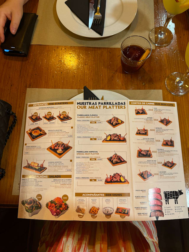 Solomillo | ojo de bife | entraña | tira de asado | vacio | secreto ibérico | chorizo | morcilla