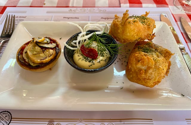 8/10We had a good dinner, with an etagere of different appetizers and steak and creme brulee. The staff was friendly and helpful. The atmosphere was warm and pleasant.