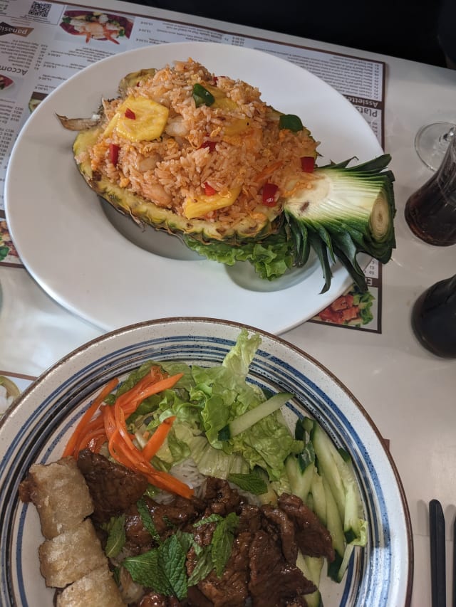 5/10If you know the real chinese bubble tea, pad thai and bibimbap you will be disappointed. To be fair,I saw the food that they served on other tables, they looked yummy. Maybe try the chinese food here and not the pad thai and bibimbap. The service is good. Servers can speak english and french.