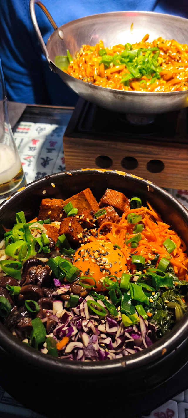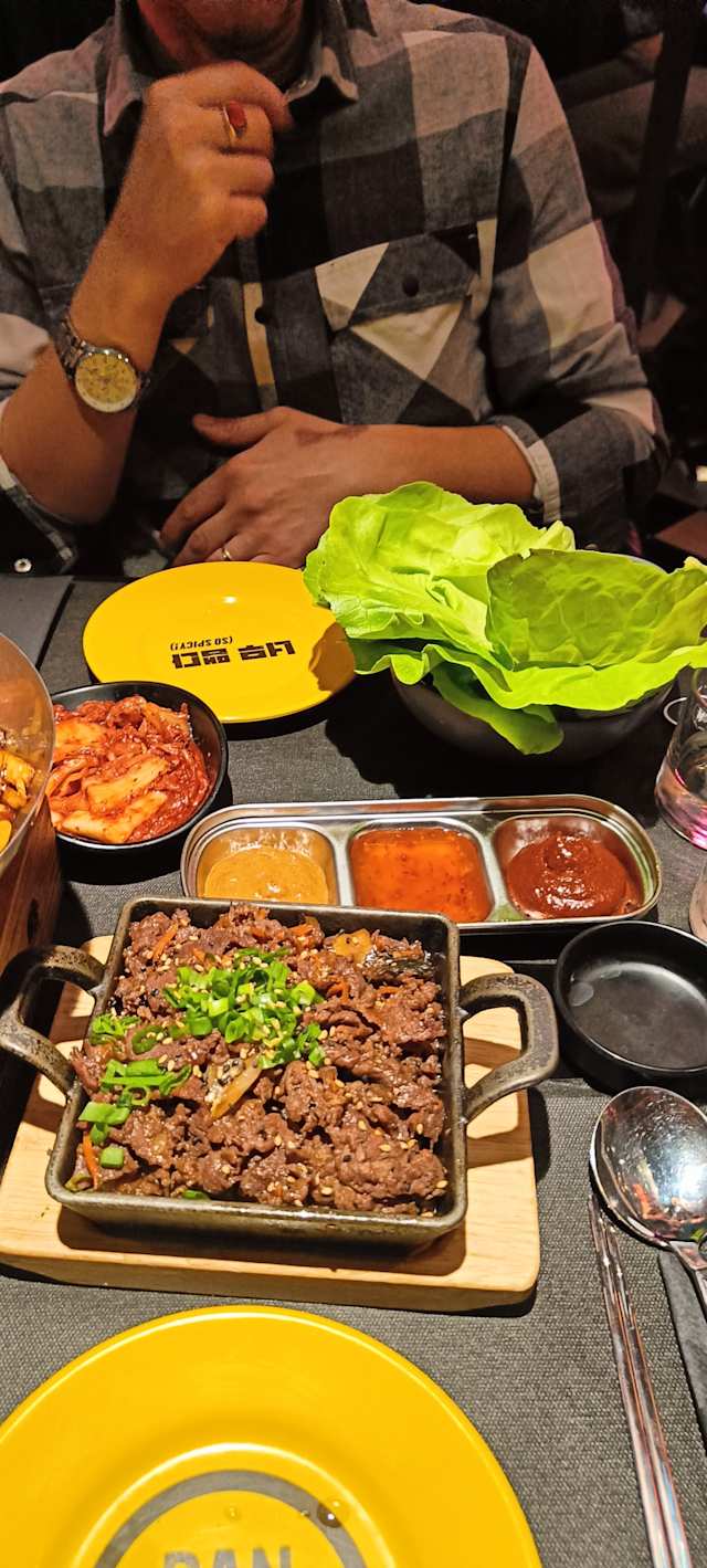 7.5/10The food was lovely, the only criticism of the food would be that the Bibimbap bowl could have been hotter (as it usually is to cook the egg.) Unfortunately the service was poor; although our waiter was lovely he was clearly run off his feet and it appeared they had kitchen issues. We didn’t get our food for over an hour and when it did come, it all came out in the wrong order and at different times (some mains before starters, and we all ate seperately). A bottle of water we requested didn’t turn up. Perhaps we caught them on a bad night