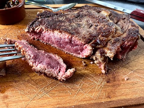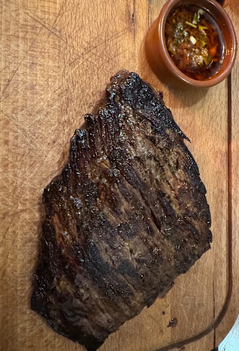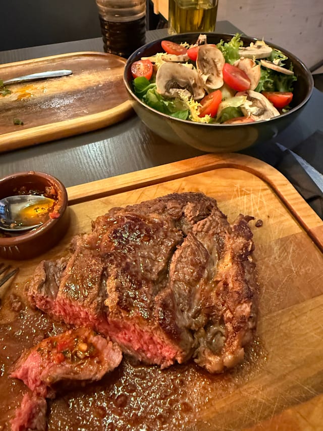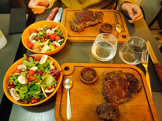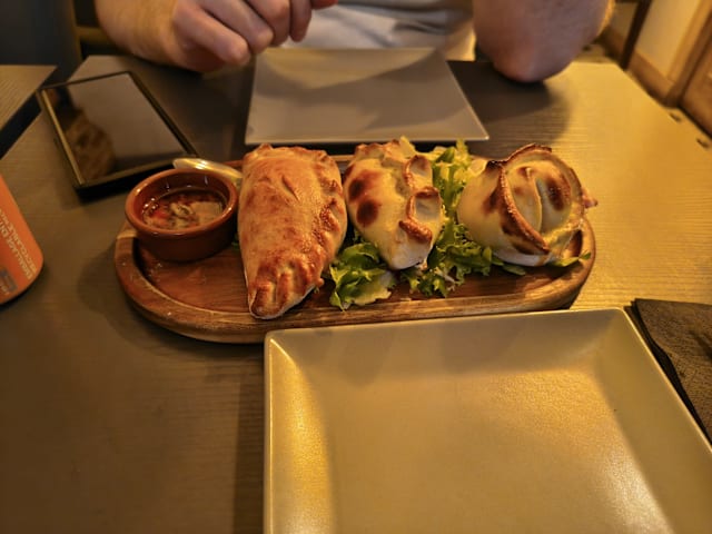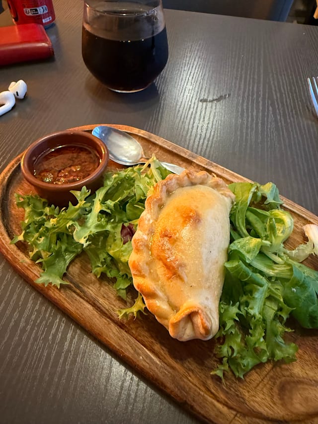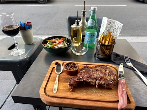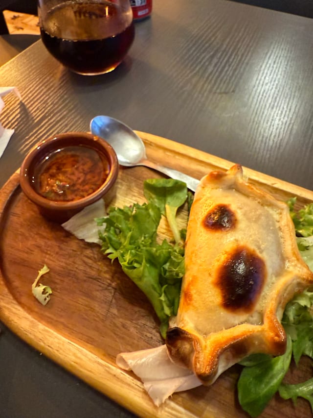 7.5/10Food was very good, but not spectacular. I got the cheese and onion empanada appetizer which was excellent and the highlight of the meal, but the entree only came with one, leaving me wanting to try the other two. The table next to me each got three served. The steak was cooked just right, but lacked any seasoning. I enjoyed it after adding a bit of salt and pepper that I had to request. The chocolate cake (almost like a cookie texture) with sauce had good flavor, however a little underwhelming for Paris. The server/owner was friendly, but service was a bit slow despite the few customers in this small establishment. My only real complaint was that there was a kitchen air conditioning vent loosely hanging out the window which was a bit noisy and blowing warm air on my legs at my table outside on the street. Other than that, it was an enjoyable meal.