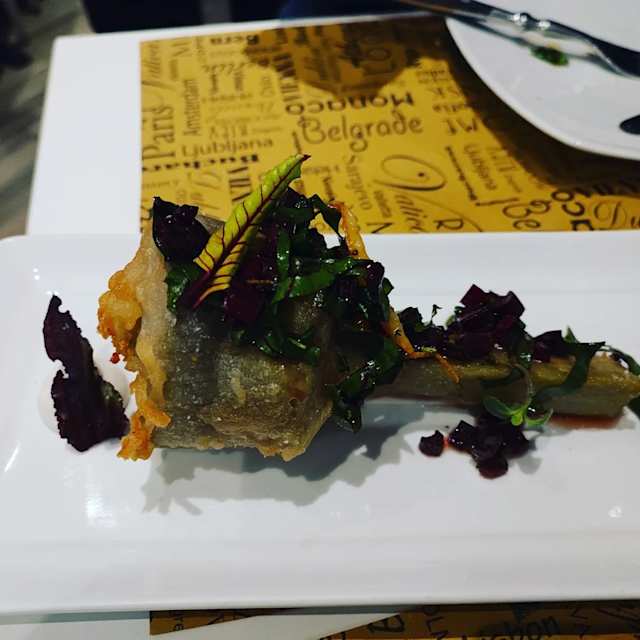 - Filetto di pollo panato con panko, mayo alla zucca, insalata di cavolo nero