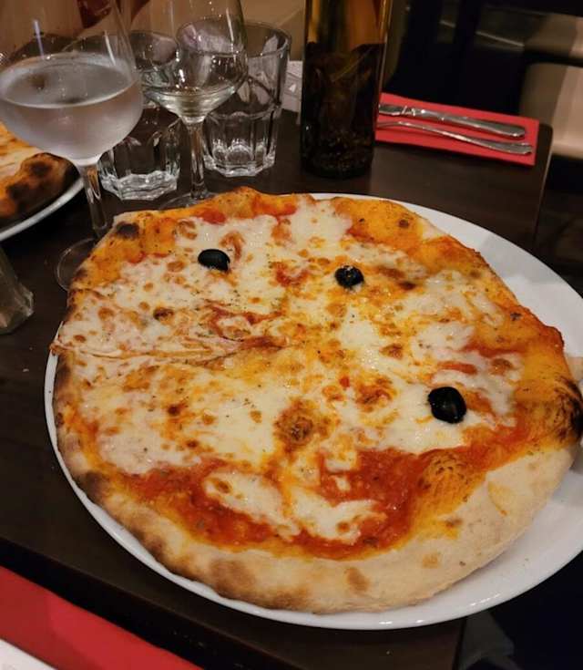 - Tomate, mozzarella fior di latte, tomate fraîche, champignons, aubergine, poivron, olives, oignon